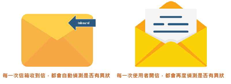 坊間多數的資訊安全設備能做到基本的網址偵測,但要能考量到「時間差」的概念做到無論使用者何時開啟信件都能再度即時確認信件是否有被不當的動態轉址,以確保安全性的高階防護偵測才是完善的詐騙防護機制。另外,QR Code 也會引領收件人前往外部連結,近期也發現越來越多這樣的詐騙行為,所以郵件安全機制也要能提前一步察覺隱含高釣魚風險的 QR Code 的 Email 並有效隔離或告警管理者。