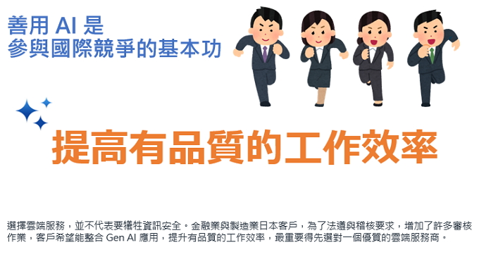 從個人到企業,AI 應用不應只停留在概念或口號,我們必須要接觸、學習、實作、並持續精進,成為能有效提升即戰力的利器。透過選擇正確的資訊工具和雲端服務,有了 AI 助理隨時為我們解惑,企業可以在日常工作流程中實現更安全、更踏實的營運成果。現在正是時候,選擇優質的 AI 雲端服務商,讓您的企業在數位轉型的浪潮中滿載智慧,福至心靈。