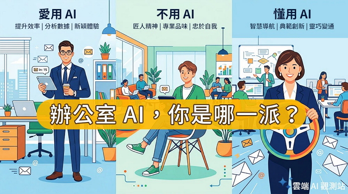 你是「愛用 AI 派」?還是「不用 AI 派」呢?其實無論屬於哪一個流派,我們都會建議你成為「懂用 AI 派」。根據《台灣企業轉型趨勢報告:2021-2025綜整與深度訪談》(註 1),企業透過人工智慧可以利用較少的資源提高競爭優勢,故加速導入是達成營運目標的關鍵。辦公室 AI 已陸續於多個公務機關導入,並明顯地提升行政效率,例如:會議紀錄整理時間可縮短 5 倍(註 2)。別忘了,要對工作成果品質負責任的人,是你自己,所以,別被 AI 幻覺帶偏焦點,把他放在對的位置才能有效提高工作表現。